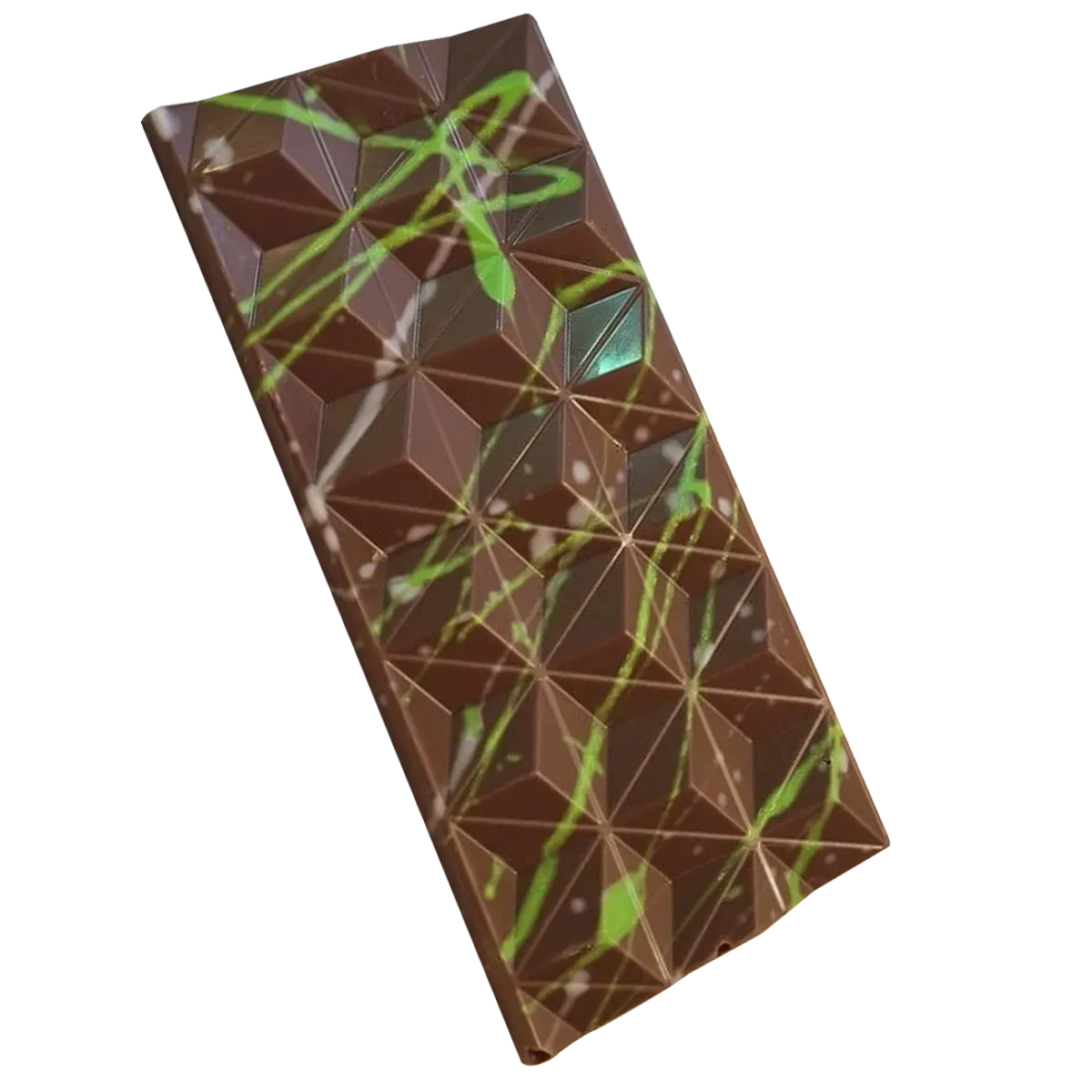 • Håndlaget melkesjokolade med fyldig pistasjpasta